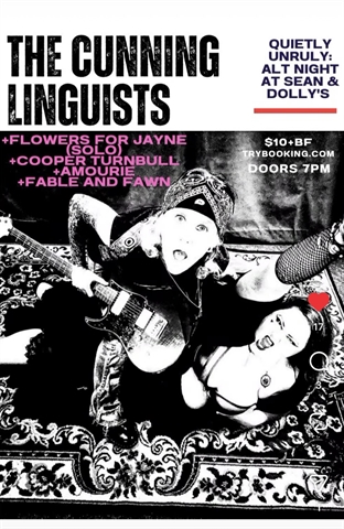 The Cunning Linguists perform stripped-back originals and reworked covers from artists who take songwriting seriously and everything else less so. Minimal gear, sharp lyrics, no filler. With very special guests. An intimate night of alt-leaning acoustic music in the low-lit corners of Sean & Dolly