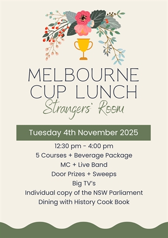 Melbourne Cup Luncheon 2026 at Strangers Restaurant - NSW Parliament