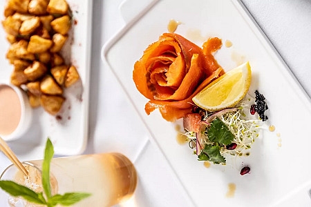 • Smoked Salmon with lemon vinaigrette, capers, watercress, fennel and dill (GF) (DF)