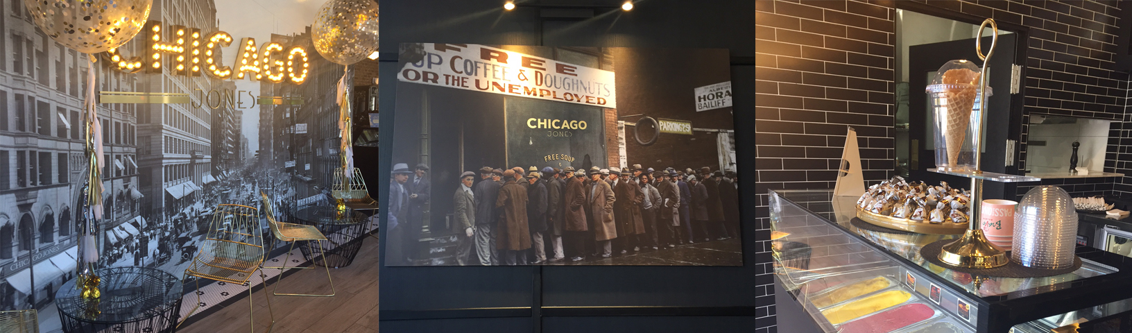 Welcome to Chicago Jones Coffee & Chocolate Maison, Sydney’s first American inspired jazz café decked out with the old school charm of 1930s Chicago: with it’s dim lighting, gold-plated furniture and photography of Chicago in the years of prohibition.