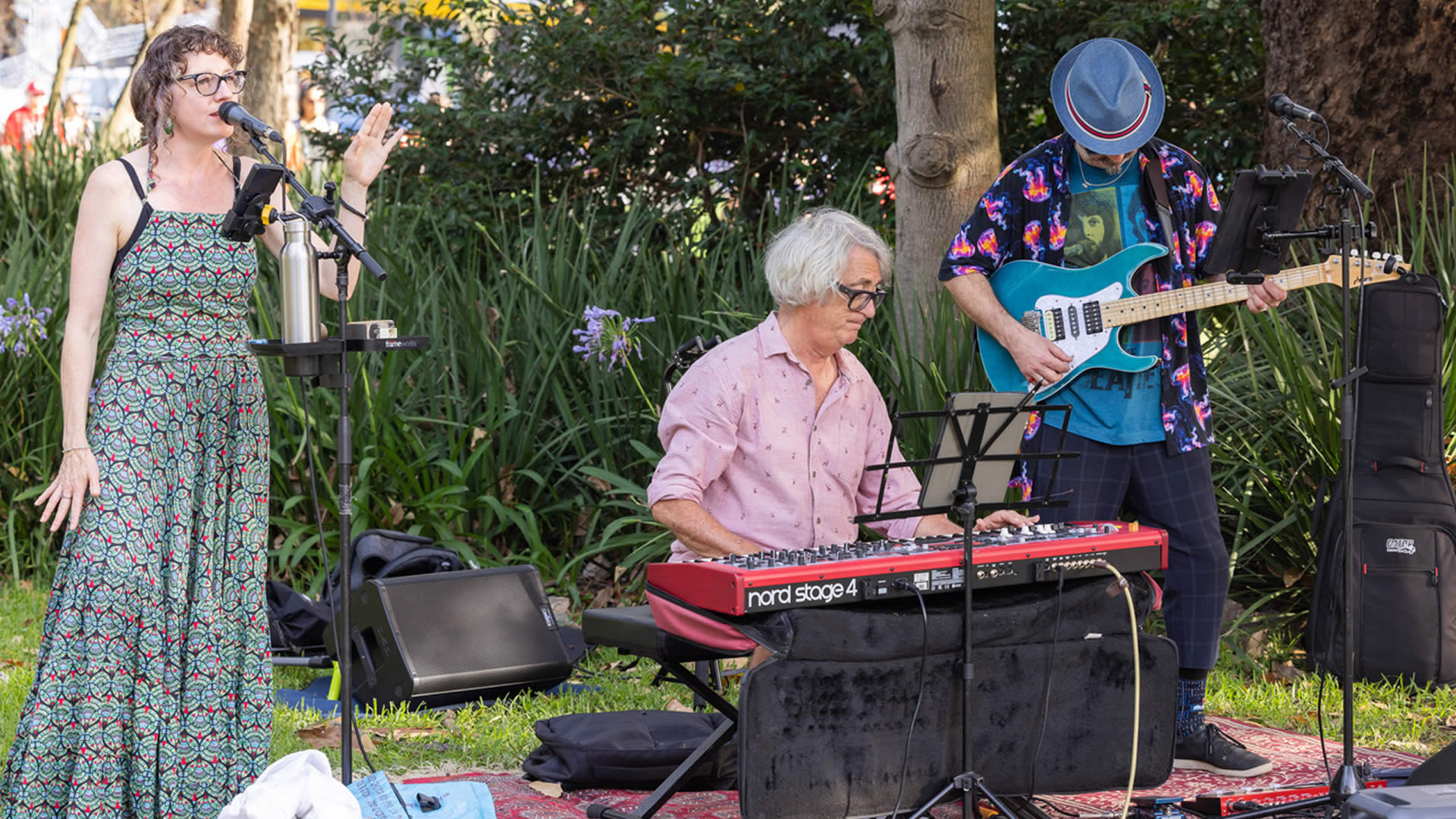There is something distinctly suburban — and distinctly Sydney — about this setting. The gentle clatter of stallholders arranging ceramics and folded linen. The scent of eucalyptus warmed by a mild March sun. A stage set to one side of the park becomes a focal point as local dance schools step forward in bright costumes, their music carrying across the open space. Families cluster in loose semicircles, toddlers swaying instinctively.