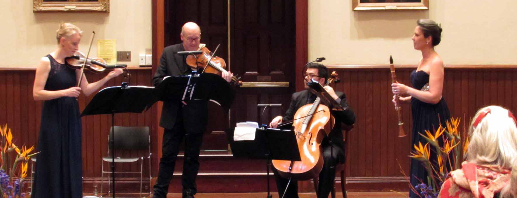 Beginning with a Vincenzo Gambaro arrangement of Haydn Quartet No 1 for clarinet, violin viola and cello in B flat major the performers displayed a kaleidoscope range of the textural capabilities of a quartet. The unfamiliar fourth member of clarinet offered overtones rarely heard. Particularly the middle register seemed much denser. Shadings abounded.
