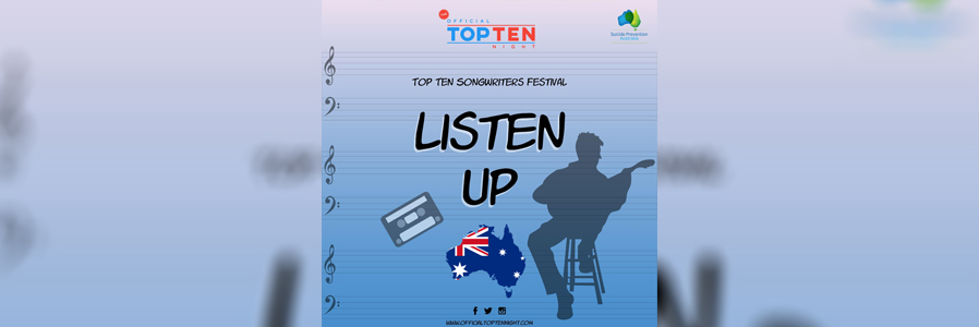 The Official Top Ten Night organises and creates unique events, held in various locations all around the world, with a simple message: Make a list, make a difference. In support of Suicide Prevention Australia, the events encourage conversations around the world, with the aim of reducing the stigma of talking about suicide and its prevention. The flagship events are the annual Top Ten Songwriters, Filmmakers and Comedy Festivals. This year sees exciting new events added to the calendar, including the return of Listen Up Australia: Top Ten Songwriters Festival 2017 and the expansion to the UK with Listen Up Britain.