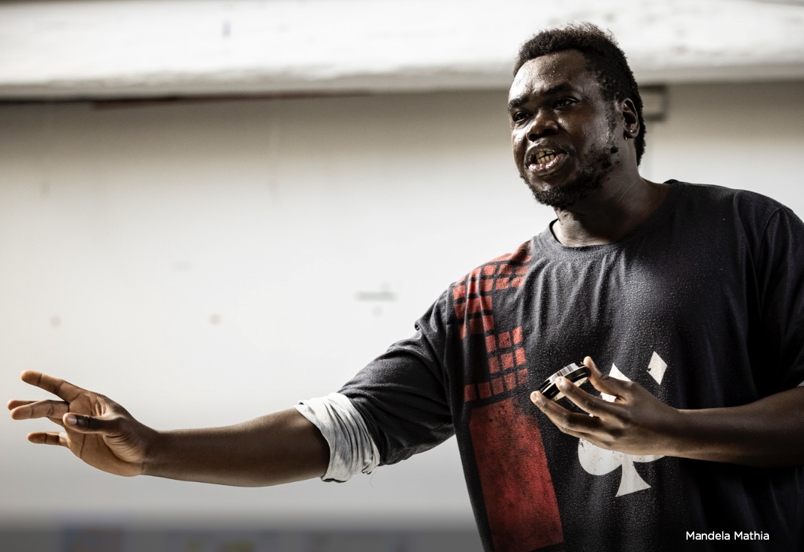 A small black rectangle on the floor of the stage evokes images of life-giving soil, perhaps characterising the connection we all have to this earth and representing the grounding force of nature, of faith and our own humanity. Accompanied by the simple beat of a tribal drum, so instinctively provided by Yacou Mbaye, is suggestive of the percussion of our hearts. A combination of shadows and mismatched yet somehow beautifully cohesive pieces create a somewhat dream-like, surreal set. Not dreamy, there are many nightmares that the place represents, but ethereal. This set represents not only a real place but also the place Mandela holds in his heart. And somehow, it also represents a place we all carry in our hearts. There are many names for this place. Let’s call it home. Home that we all carry in our hearts, imprinted on our souls. Home that is our loved one – those who passed and those still with us.