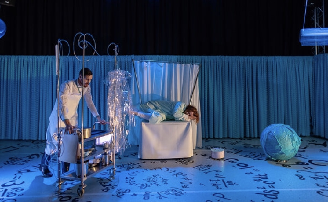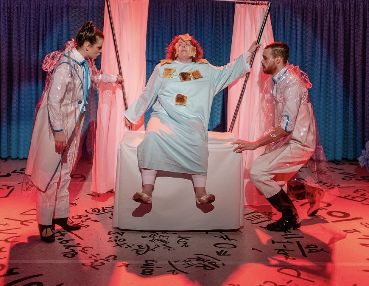 In turn Pippe finds herself in a stark, white hospital ward replete with a female Doctor called ‘Doc’ (Kate Walder) who likes to start all treatments with a ‘Studio 54’ style environment of music and hospital drugs, and her nursing assistant called ‘Nursie’ (Nicholas O’Regan), who is camp, strong and fabulous, and who morphs from being Doc’s ‘bitch’ to having a secret empathy for Pippie’s plight and her obvious need for human connection.