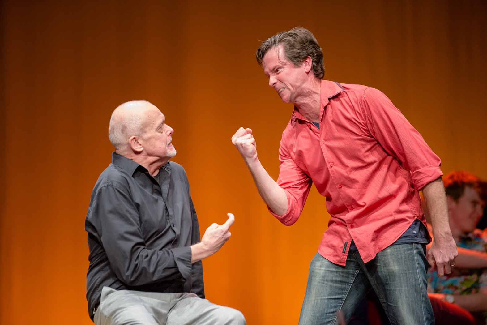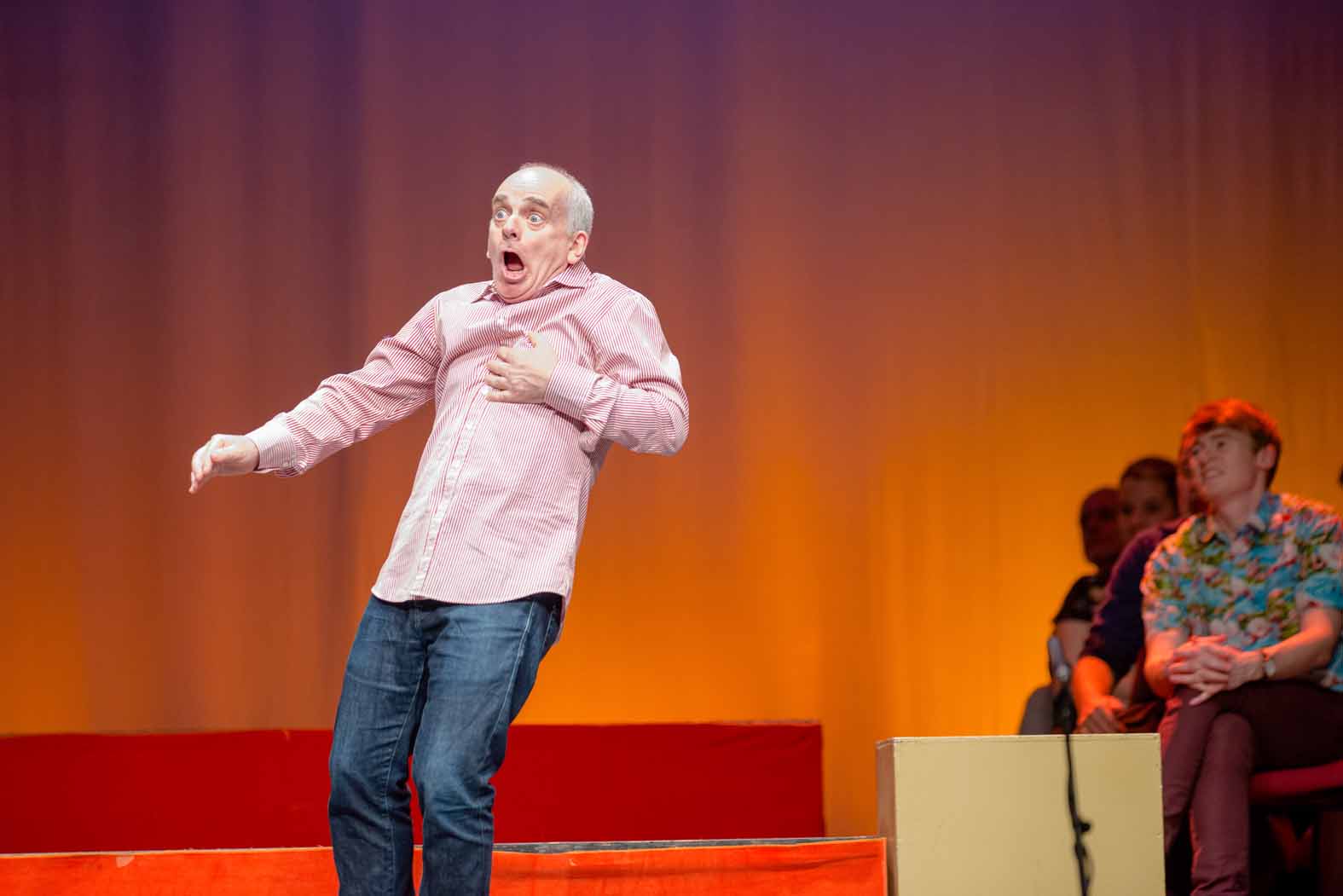 Hosted by Nigel Sutton and Jenny Hope, featuring three judges from last year’s championships, the first challenge was thrown for all three generations to explain their era: the I Babies in the genre of Walt Disney, the Old Timers as a 1980s music video, and the Middle Agers in Space Travel….all against the backdrop of musical improviser maestro Gep Blake: who really was a highlight of the show. From sci-fi to rap, the Macarena to Waltzing Matilda, Blake’s musical prowess was spot on.