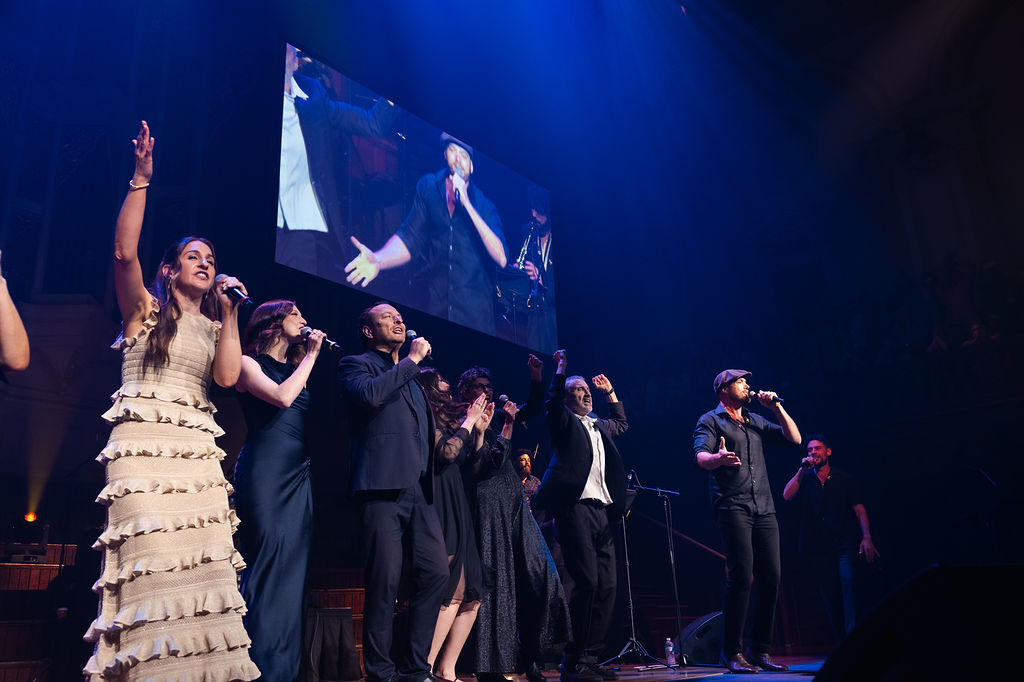 From there, a sequence of modern Israeli and international songs: Ulai Tishma by Michal Greenglick (performed tenderly by Sasha Fisher), HaLev Sheli by Ishay Ribo (a radiant duet between Amit Benita and Goodridge), and Rachel Platten’s defiant Fight Song delivered by Ben Goldstein, all drew threads between ancient faith and contemporary resilience. Each artist brought unique emotional texture: Benita’s heartfelt sincerity, Goodridge’s luminous violin and vocals which were a consistent standout throughout the entire concert, Fisher’s soul-anchored storytelling, and Goldstein’s dynamic pop-soul power and undeniable stage presence.