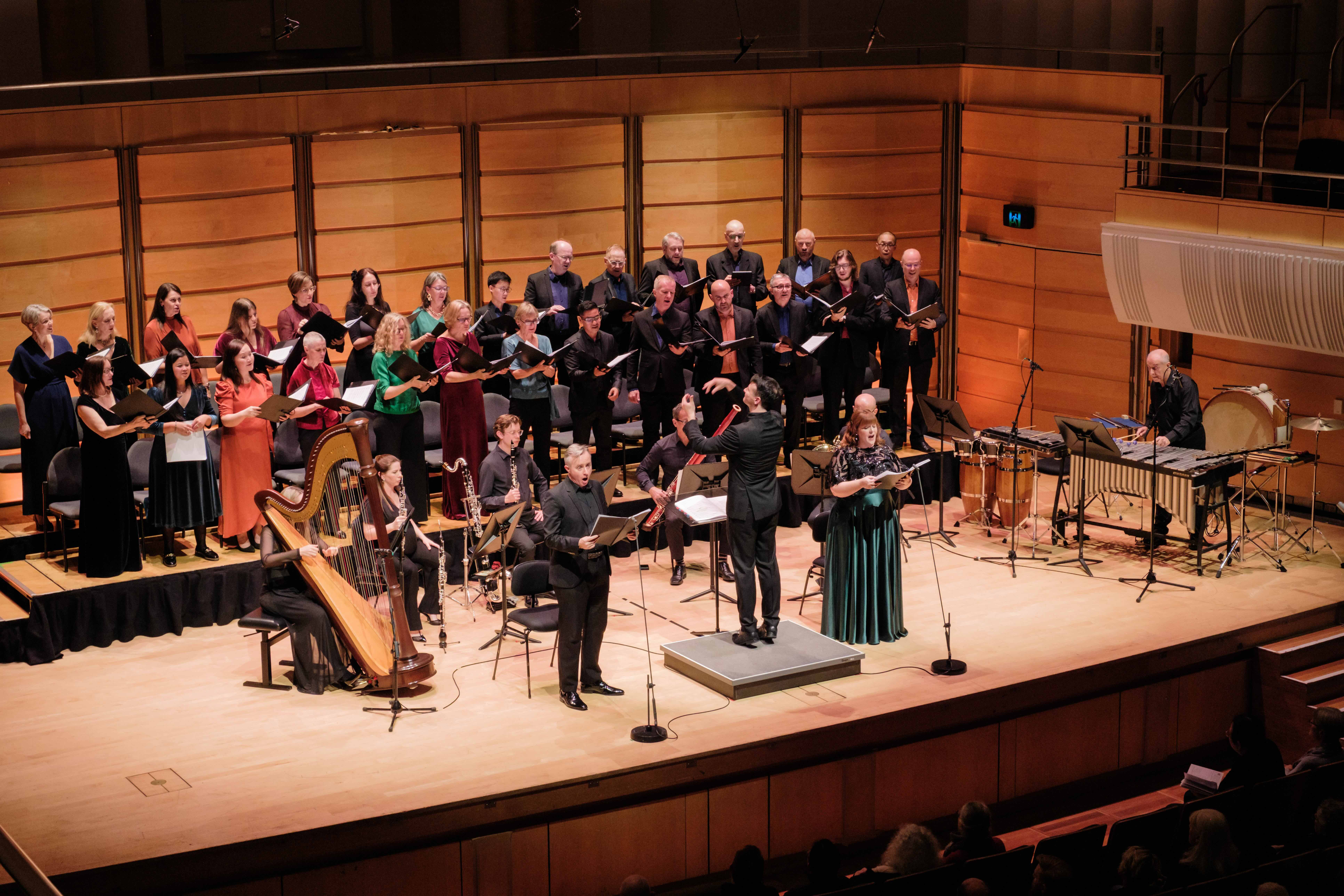 Act Two was dedicated to Paul Stanhope’s Requiem, an ethereal journey from sorrow to solace, sung into being and performed with rich instrumental accompaniment that added depth and colour to the choir’s potent delivery. The ensemble included Nicola Bell on oboe and cor anglais, Richard Shaw on clarinet, Andrew Barnes on bassoon, Euan Harvey on French horn, Emily Granger on harp, and Jess Ciampa on percussion. Under the direction of conductor Sam Allchurch, soloists Brooke Window (soprano) and Richard Butler (tenor) lent their expressive voices to this moving work.