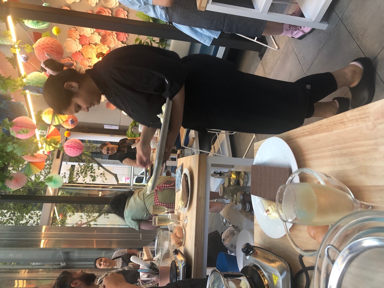 Feeling like we were on the set of Masterchef, purely because there was a time limit, and our stations were so modern, colourful and fun, an expert chef was also on call should things get awry. (We needed the pastry chef once, which was minus a team point, but hey, better to do it properly and guess if our measurements in mls were the same as gms).