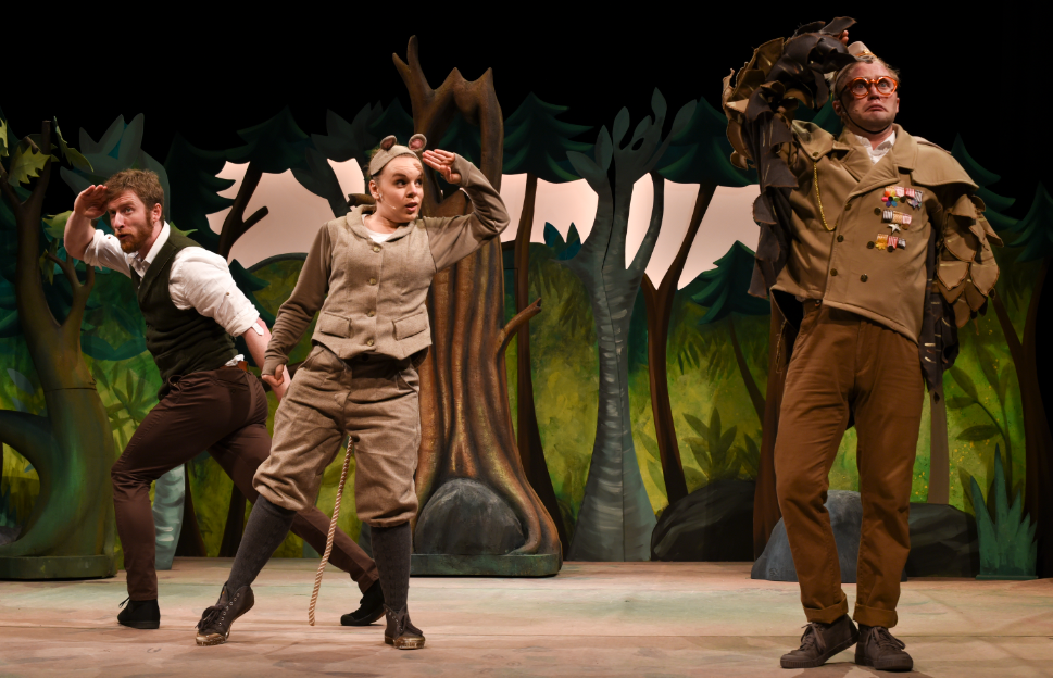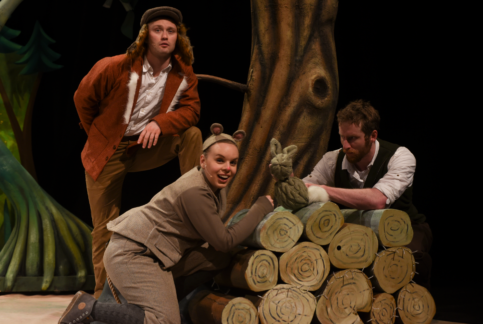 The set is truly magical with its simplicity, just a few fairytale trees and well-designed lighting and you forget it is a stage, but just like your children, you begin to believe in the deep dark wood. Sitting in the front row, close enough to see the fine details of the colourful yet simple costumes I was able to appreciate the vivid expressions on the faces of the extraordinary cast. In fact, it is the skill and talent that makes this show. The three actors portray a range of vastly different characters while singing catchy tunes and bopping and boogying around the stage. It is impossible to choose one that would stand out, as they were all equally entertaining. The three actors were able to reach across the stage and into the auditorium and touch the hearts of all there. The kids enjoyed their frolics and the ever-popular “behind you” routine while the adults appreciated some of the subtle humour of the various characters, such as the Snake (I believe he was the culprit that made me laugh so hard).