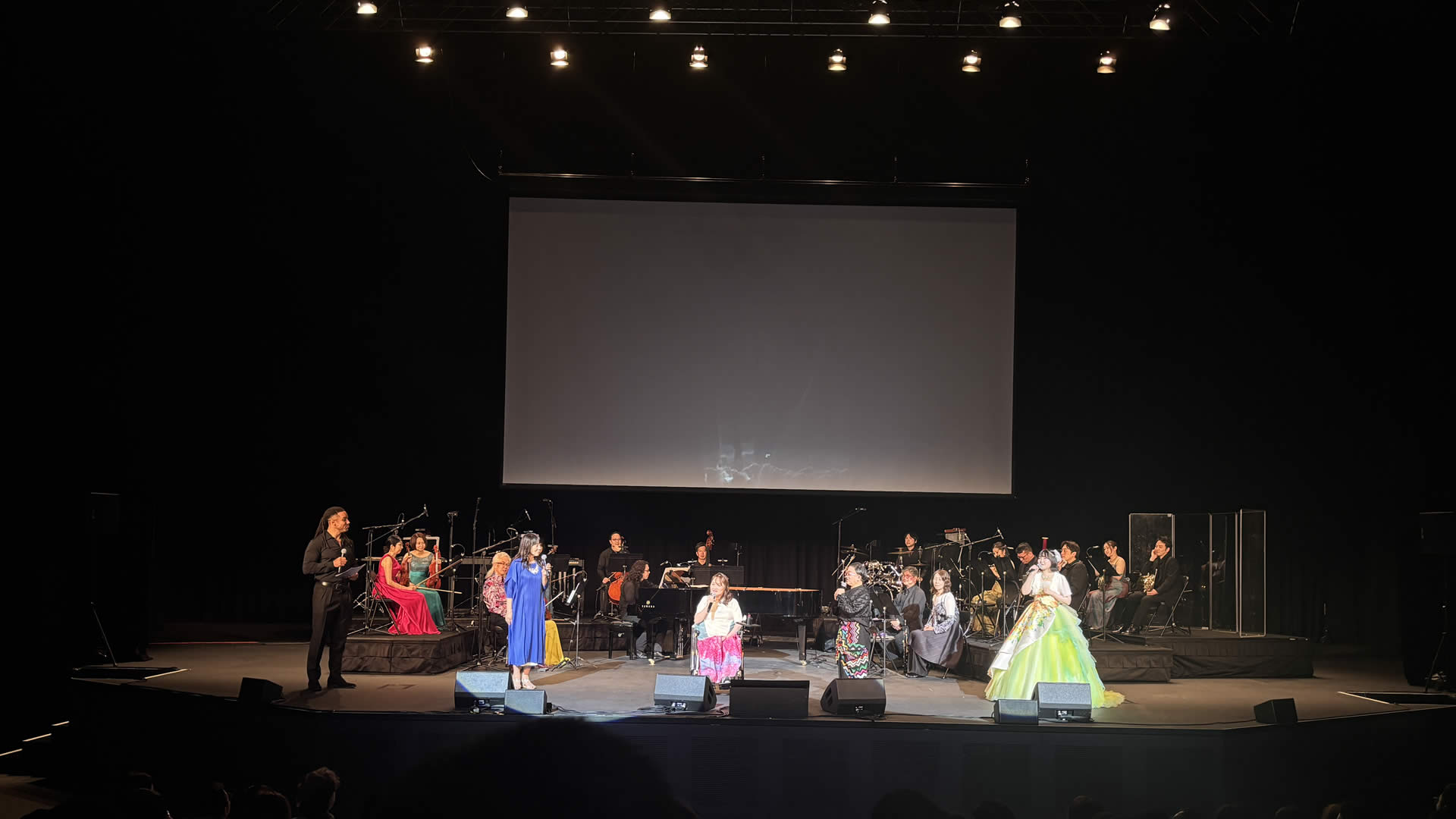 The first singer, Yuyu, appeared in a delicate baby pink ballgown, her exuberance filling the stage. After her initial song, she invited her mother, Azumi Inoue, to join her in a beautiful vocal harmony. The duo encouraged audience participation, clapping and singing along to the chorus of My Neighbour Totoro. It was a moment of pure joy, made even more memorable by the sea of smiling faces around me.