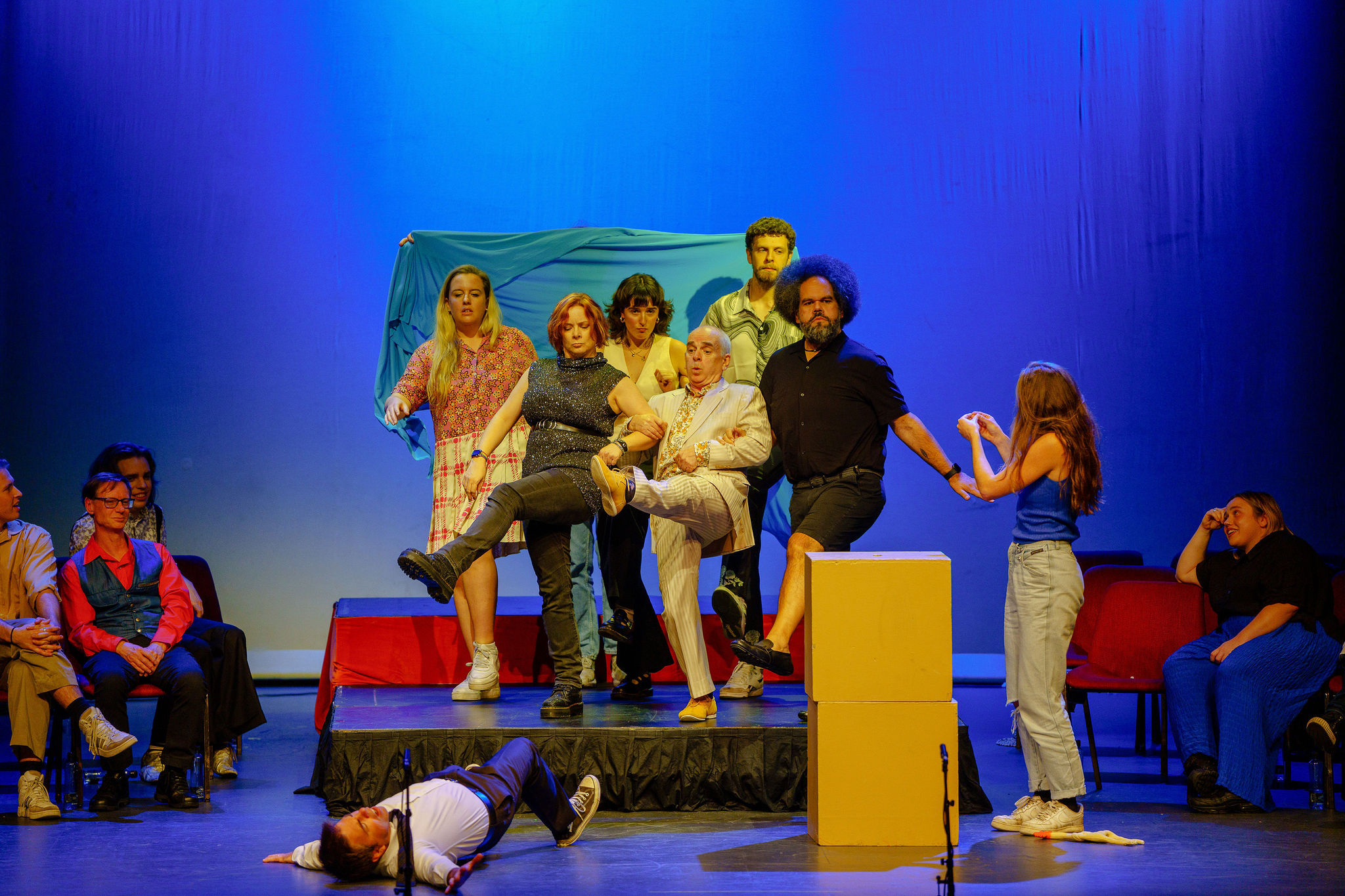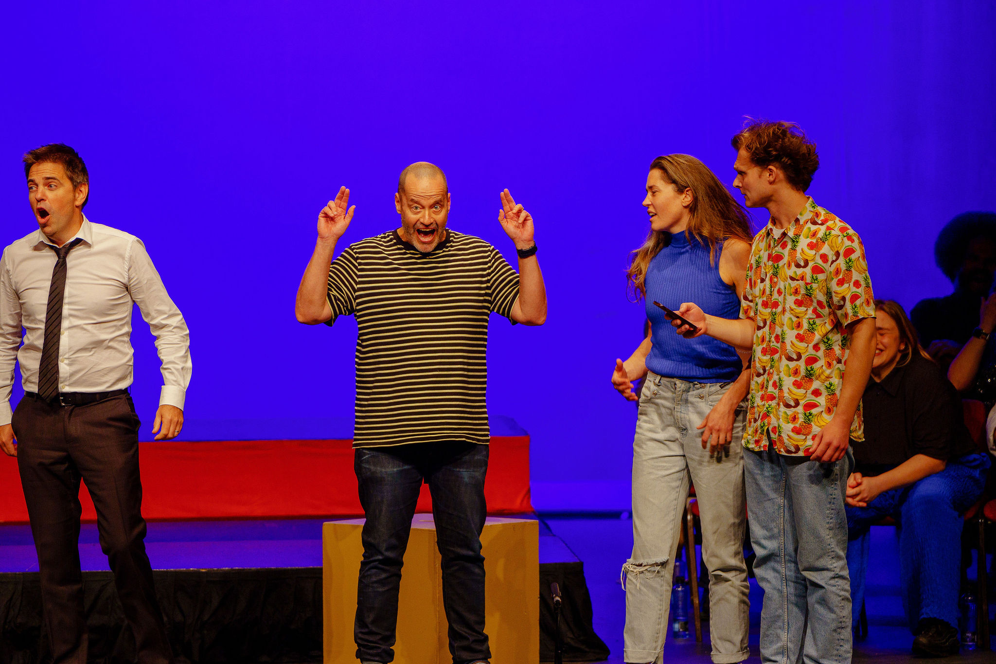 Faced with a blank stage and armed with only basic props like a box or pool noodle, this motley crew of par excellence pros and rising stars create magic on the spot, relying solely on their boundless imagination. These fearless performers tread a razor-thin line between genius and catastrophe. The audience holds its collective breath, eagerly anticipating the thrill of a brilliantly saved mishap, off-the-cuff one-liners or a triumphant comedic coup. The stakes couldn't be higher as they flirt with fiasco and conjure up comedy gold, leaving everyone wanting more, more, more! .