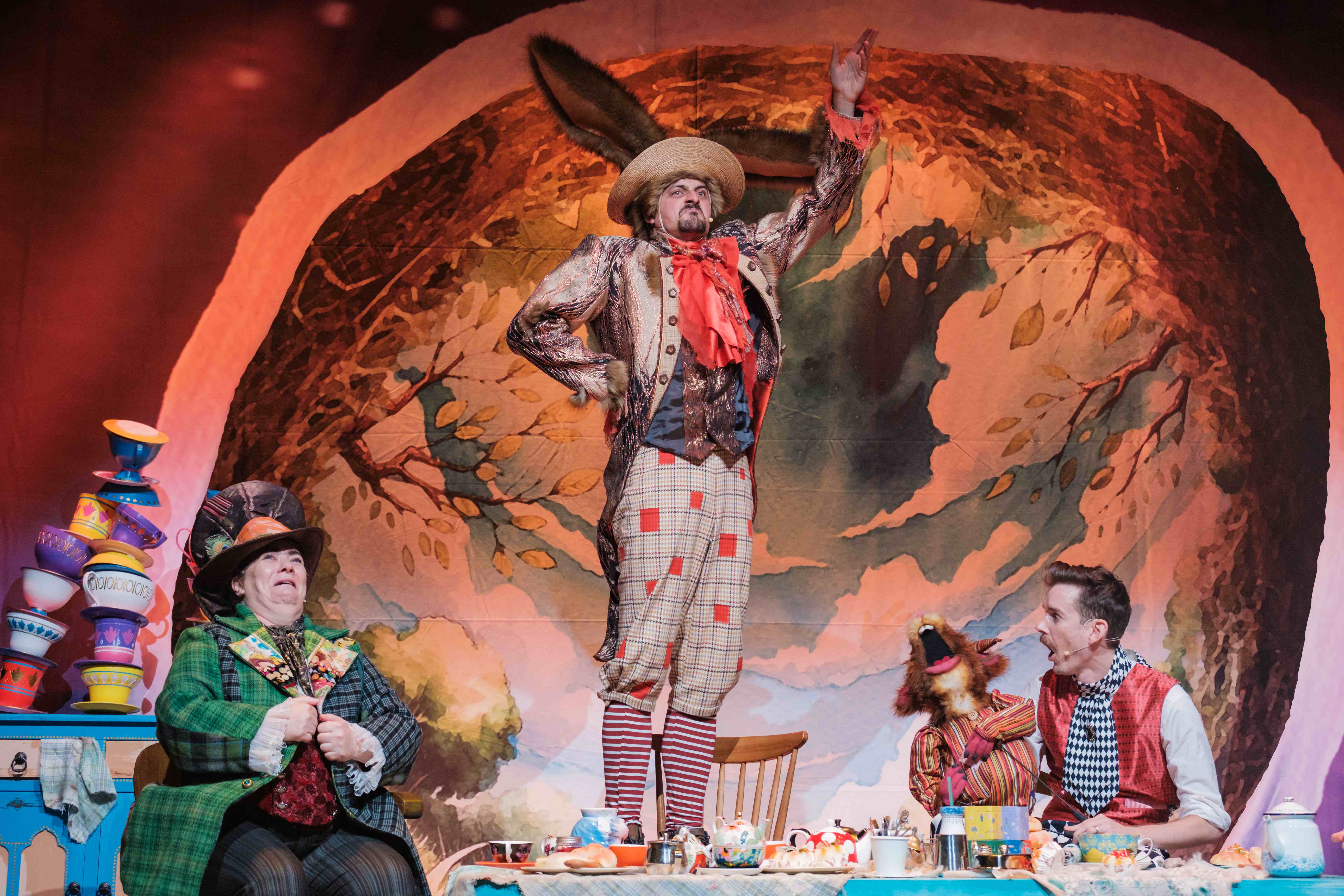 The entire cast was frabjously fabulous as they brought each character to life. Éowyn Turner was the one and only Alice. She effortlessly transitioned between bewilderment and determination as she fearlessly travelled along her way. Simon Burvell-Holmes is the ultimate Queen of Hearts and the sly Cheshire Cat. Anthony Craig stands out as the transforming Caterpillar and the Doormouse. That said, everyone on stage contributed equally to creating this magical experience.