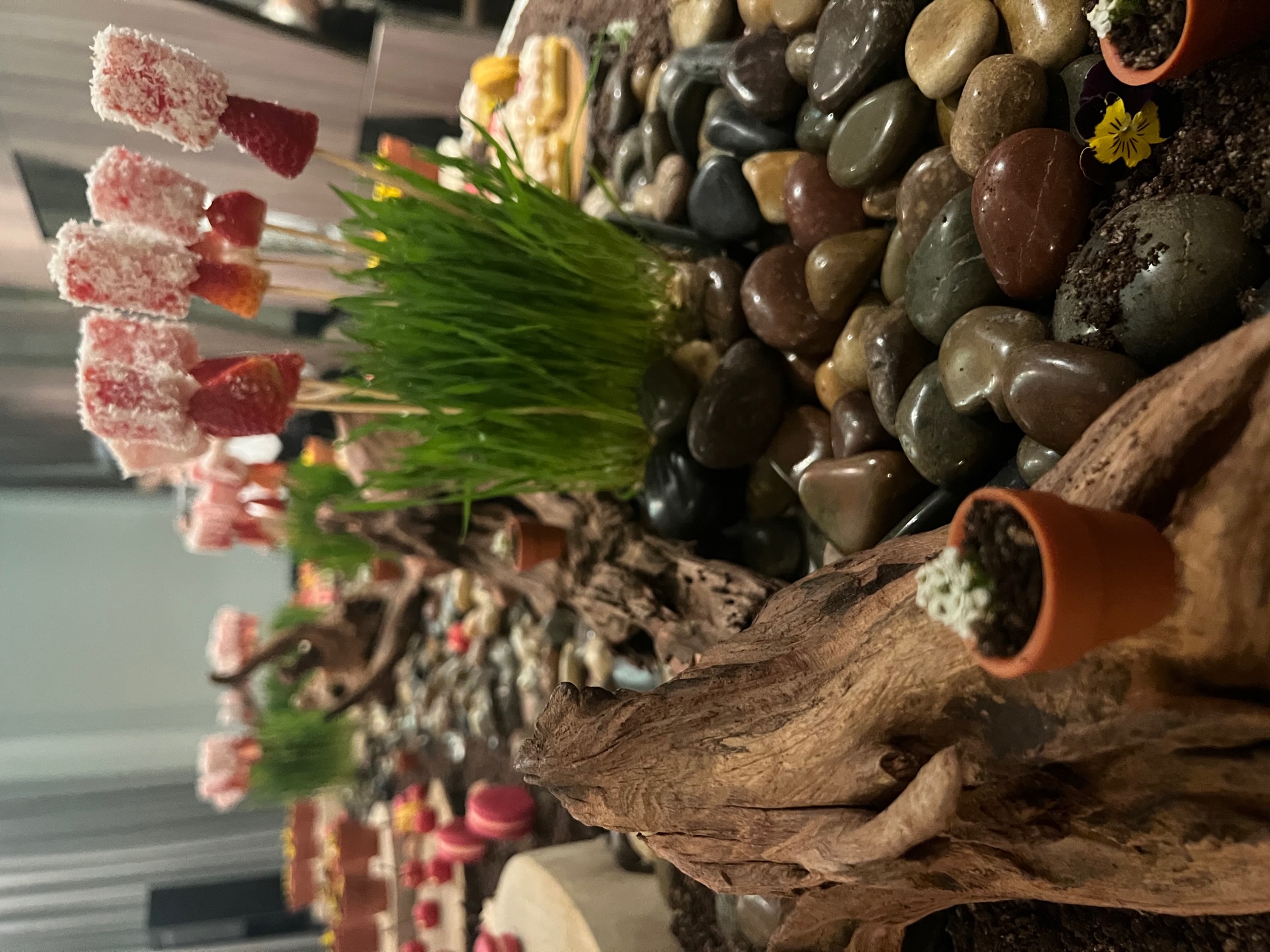 …and food theatre it was. Dessert was not the afterthought here. It was the hero piece, centre stage, enticing one as soon as we stepped foot into the impending sensorial heaven of tastebuds mingled with jazz sounds. Who goes to a restaurant greeted by a 10 foot long dessert garden where everything, and I mean everything, was edible? The mini potplants? That was avocado chocolate mousse. The cherries? Again chocolate mousse cherries, the garden itself sprinkled with macaroons, friands and skewers of watermelon and strawberry, dripping in honey and raw coconut….and finally, the soil. The soil was, yep you guessed it, all chocolate. Willy Wonka eat your heart out.